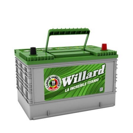 Batería para Carro WILLARD. Esta batería para carro tiene una Garantía hasta 12 meses, si se comprueba defectos de fabricación. Para servicio público tiene una garantía de 6 meses. Píde tu batería para carro e instalación a domicilio en Bogotá, Cali, Medellín, Cartagena, Barranquilla, Pereira, Villavicencio, Valledupar, Santa Marta, Bucaramanga, Rionegro y Apartadó.